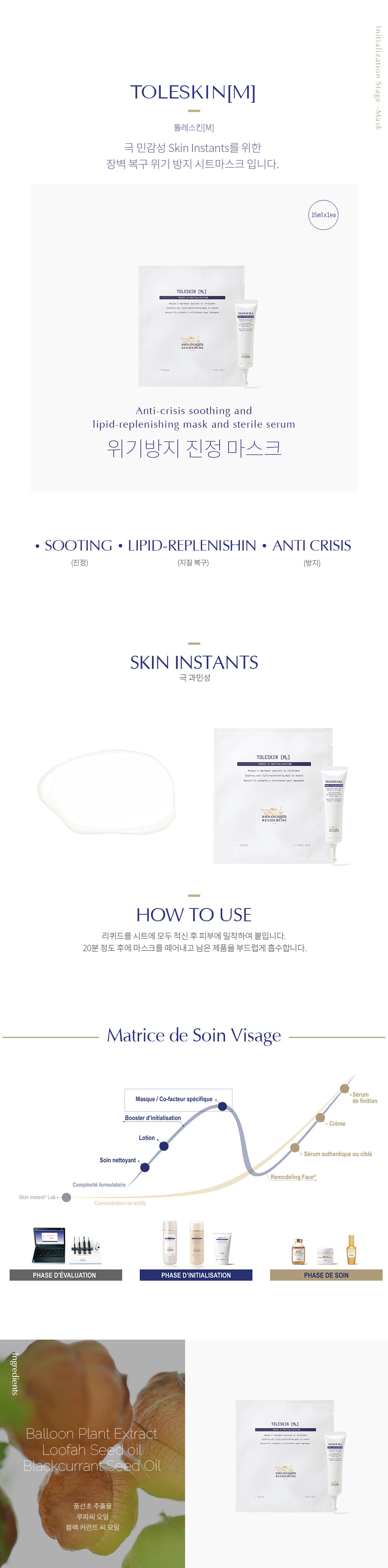 아토피, 극 과민성 피부를 위한 위기방지 진정 마스크 / 극 민감선 Skin Instants를 위한 장벽 복구 위기 방지 시트마스크 입니다.
